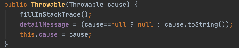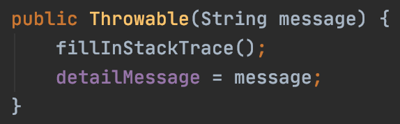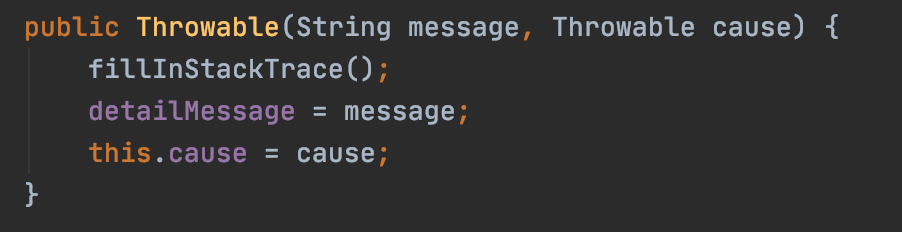 모든 예외 클래스의 부모가 되는 Throwable 클래스는 기본적으로 아래와 같은 생성자를 제공합니다.